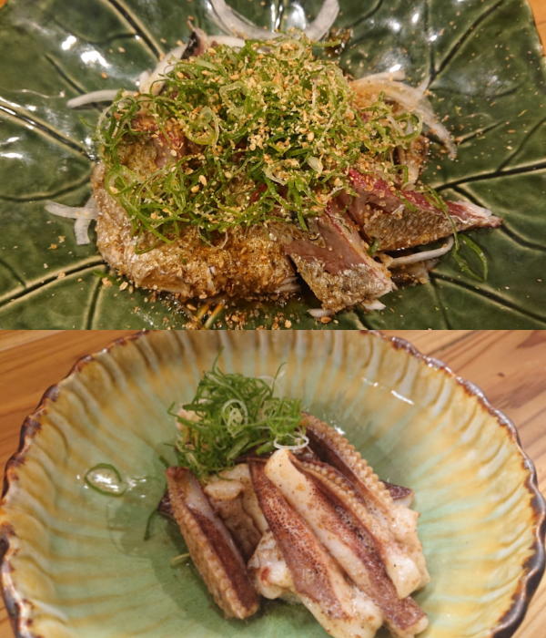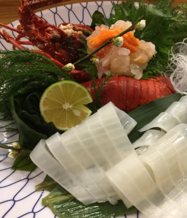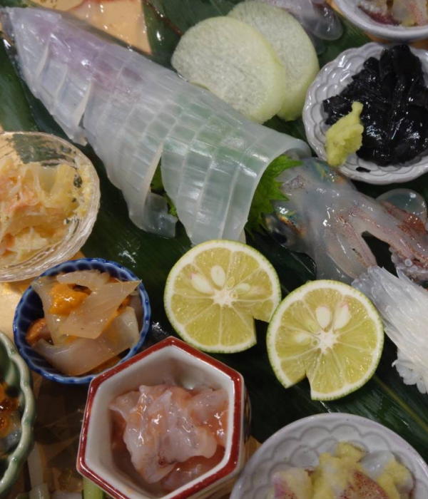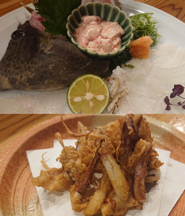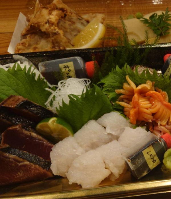 泳ぎいかのお造りやお造り盛り合わせやカツオ藁焼き