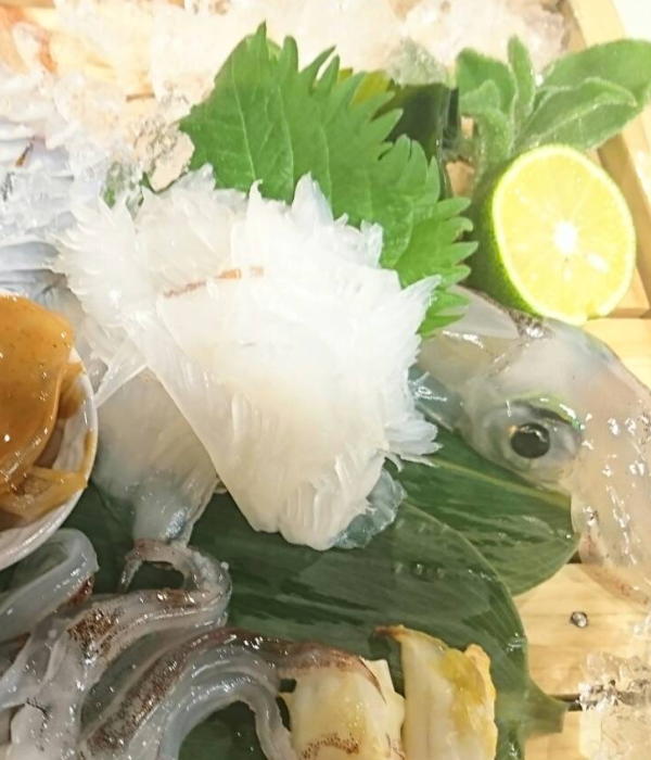 泳ぎいかのお造りやお造り盛り合わせやカツオ藁焼き
